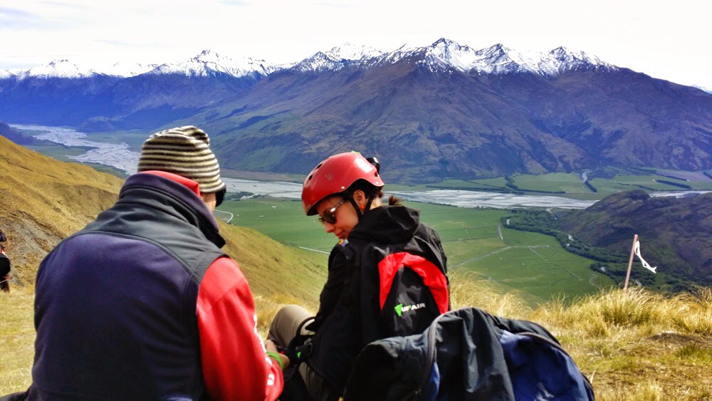 Tuulet eivät suosineet meitä viimeksi Wanakassa ollessamme, mutta nyt kolmannella yrityksellä Wanaka Paraglidingin Richard näytti vihdoin vihreää valoa ja päästiin ilmaan. Wanakan tandemvarjoliitohypyt ovat Uuden-Seelannin korkeimmat ja ne tehdään läheisen Treble Conen rinteiltä. Samalla rahalla -tai itse asiassa vähän halvemmalla, n. 120€- saa siis lähes puolet enemmän aikaa ilmassa kuin Queenstownissa, jossa esimerkiksi Skyline Gondolalta tehtävät hypyt kestävät 8-10 min. (vrt. Wanakan 15-25 min.). Lisäksi bonuksena on Wanaka Paraglidingin Richardin, todella sympaattinen ja osaava tyyppi, joka huokuu hyvää fiilistä ja rakkautta lajiaan kohtaan. Richard tunsi nimenomaan Wanakan ja Treblen Conen vuoren paremmin kuin hyvin. Hän kertoi juuri Treblen Conen olleen syy siihen, miksi muutti aikoinaan takaisin Wanakaan: "Rakkauteni juuri tähän vuoreen ja näihin maisemiin, siksi olen tehnyt näitä hyppyjä jo yli 30 vuotta yhdessä ensikertalaisten kanssa".
